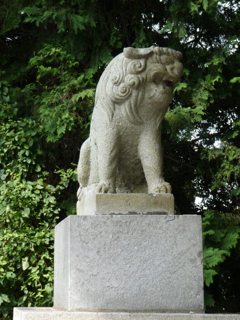 一の鳥居から100段の階段を登り切ったところに当やしろの守り神が一体います。